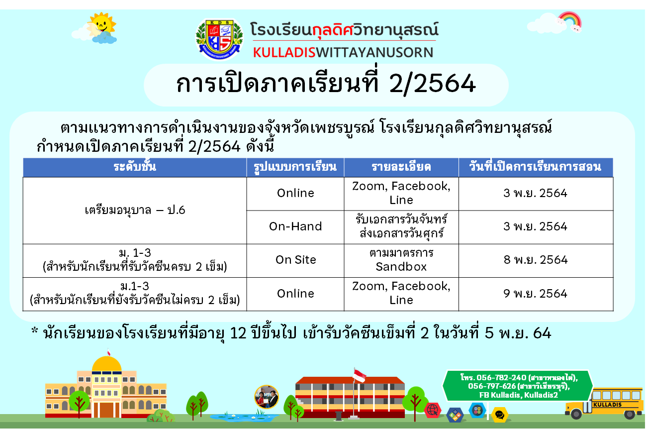 กำหนดการการเปิดภาคเรียนที่ 2/2564 ตามประกาศของจังหวัด